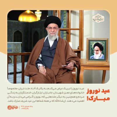 عید نوروز را تبریک عرض میکنم به یکایک آحاد ملت ایران، مخصوصاً خانوادههای معزز شهیدان، جانبازان، ایثارگران، خدمتگزاران به زندگی مردم و همچنین به دیگر ملتهایی که نوروز را گرامی میدارند و به آن اهمیت میدهند. انشاءالله که بر همه شماها این عید شریف مبارک باشد.